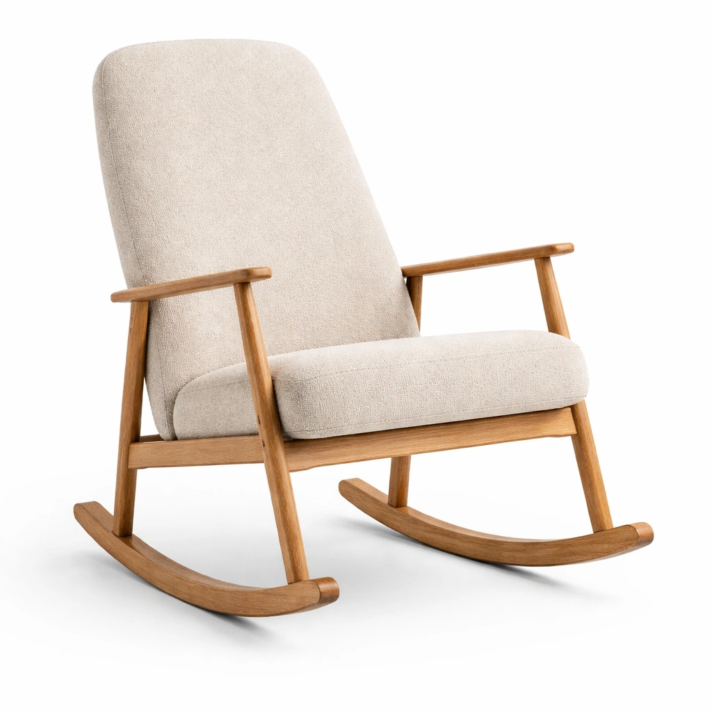 Sedia a dondolo in legno massello e tessuto beige