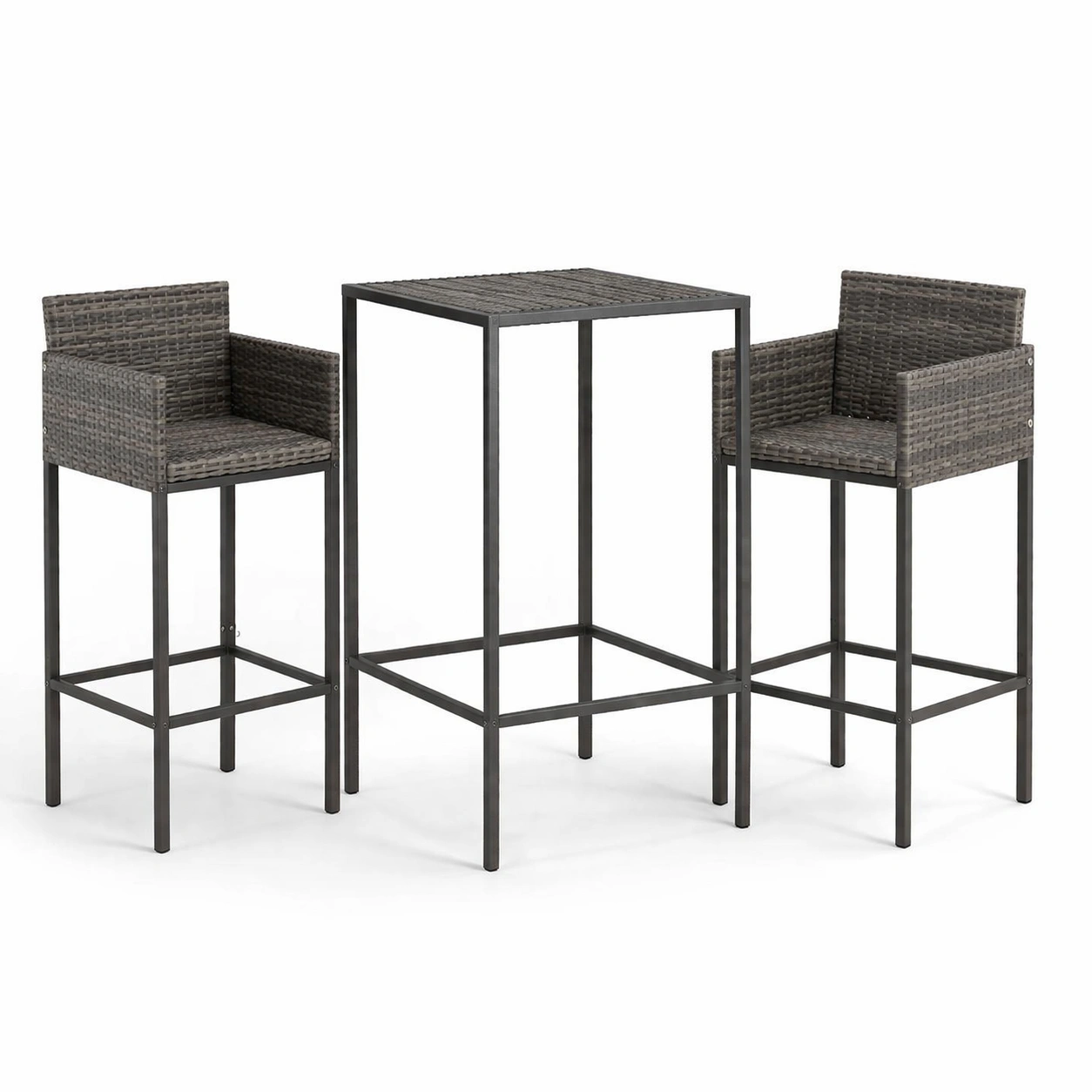 Set bar in rattan e acciaio con sedie e tavolo alto