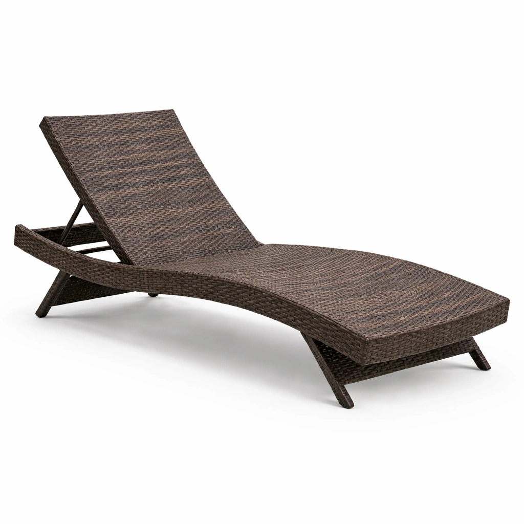 Il lettino prendisole è realizzato in rattan sintetico con telaio in acciaio. La forma ergonomica curva offre comfort, mentre lo schienale regolabile permette un uso personalizzato. Non richiede assemblaggio ed è facile da pulire con un panno umido. Capacità di carico: 120 kg.